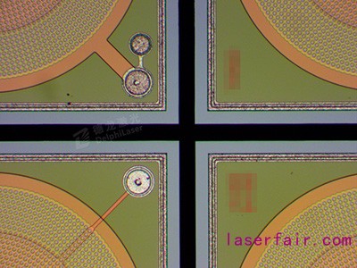 矽材料透射光譜的特性,見圖2,矽材料對紅外透過率很高,所以矽的隱形切割設備,通過選用短脈衝(chong) 紅外激光器,將激光脈衝(chong) 聚焦到矽襯底內(nei) 部,實現隱形切割。激光隱形切割是非接觸式切割,解決(jue) 了砂輪切割引入外力衝(chong) 擊對產(chan) 品破壞的問題。不過一般設備的激光隱形切割形成的改質層區域會(hui) 使材料變得酥脆,還是會(hui) 形成少量細小矽碎屑掉落,雖然碎屑數量遠少於(yu) 砂輪切割,如前文所述,MEMS晶圓因為(wei) 無法通過清洗的方法去除細小矽碎屑,故這些碎屑將對芯片造成破壞,影響良率。德龍激光生產(chan) 的矽晶圓激光切割設備,見圖3,選用自製的紅外激光器和自主開發的激光加工係統,實現矽晶圓的隱形切割,該設備能夠很好的控製隱形切割後碎屑的產(chan) 生,從(cong) 而滿足高品質MEMS晶圓切割的要求,保證切割良率。德龍激光的矽晶圓激光切割設備自推向市場後,得到了國內(nei) 多家量產(chan) 客戶的認可和好評,設備在多個(ge) MEMS製造廠內(nei) 批量切割諸如矽麥克風/電熱堆/陀螺儀(yi) 等MEMS產(chan) 品。實物切割效果圖見圖4。