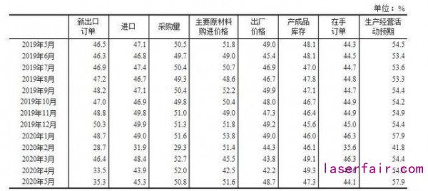 值得注意的是,本月生產(chan) 指數較上月下降0.5個(ge) 百分點,不過仍保持在53.2%的高位,這表明企業(ye) 生產(chan) 在前期較快恢複的情況下,本月回升勢頭稍有放緩。本月從(cong) 業(ye) 人員指數為(wei) 49.4%,較上月下降0.8個(ge) 百分點。本月新出口訂單指數雖較上月上升了1.8個(ge) 百分點,但仍處於(yu) 35.3%的曆史地位,低於(yu) 去年同期11.2個(ge) 百分點。