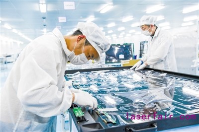 圖為(wei) 在位於(yu) 宿遷激光產(chan) 業(ye) 園的江蘇華科創智技術有限公司,工人在組裝車間作業(ye) 。