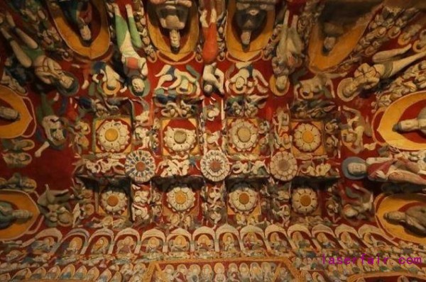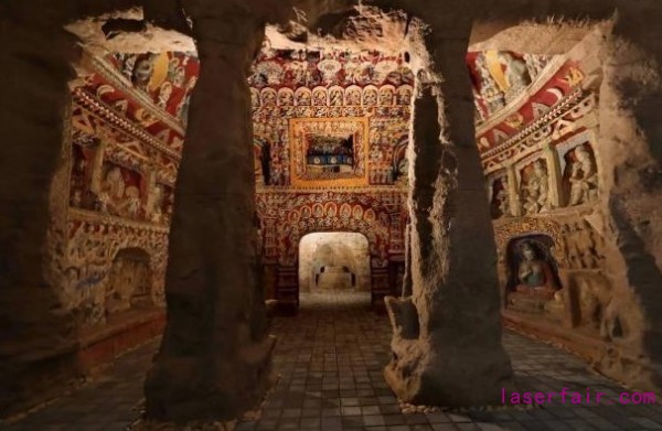 該單元是浙江大學與(yu) 雲(yun) 岡(gang) 石窟研究院戰略合作六年來的重要成果之一,是科技與(yu) 藝術的結晶,1:1複原了雲(yun) 岡(gang) 第12窟。雲(yun) 岡(gang) 第12窟位於(yu) 雲(yun) 岡(gang) 石窟中部窟區,因色彩華麗(li) 而成為(wei) “五華洞”的主要洞窟之一。洞窟平麵呈長方形,分前後兩(liang) 室,四壁布滿層層疊疊的飛天伎樂(le) ,共雕刻14種50多件樂(le) 器,是當時社會(hui) 各民族樂(le) 舞藝術大融合的真實寫(xie) 照。