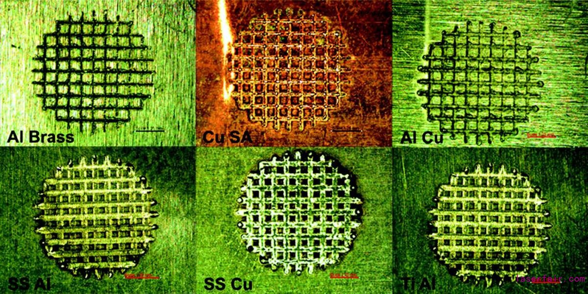 圖 4:僅(jin) 用 1 秒左右的時間就對直徑 4mm、網格形狀的不同材料組 合完成了微焊接。