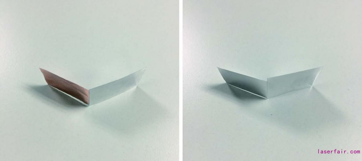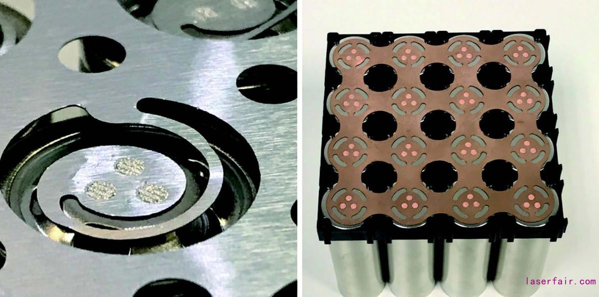 圖 1:激光微焊接的示例;將 25μm 鋁箔焊接到 25μm 鋁箔(左)和將 25μm 鋁箔焊接到 10μm 銅箔(右)。