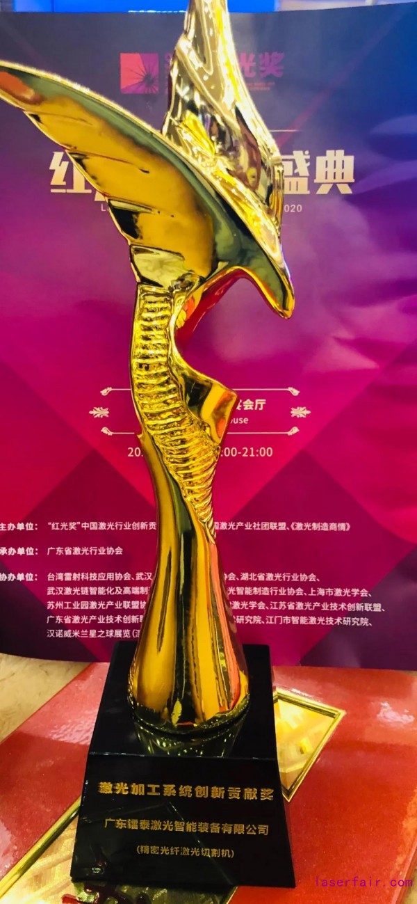 鐳泰激光榮獲加工係統類的“激光加工係統創新貢獻獎”