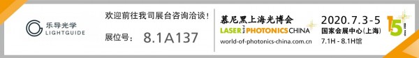 今年新冠疫情來襲,導致原定於(yu) 3月份的激光行業(ye) 展會(hui) 慕尼黑上海光博會(hui) 延遲至7月3-5日舉(ju) 辦。樂(le) 導光學技術(上海)有限公司(Lightguide Optics)今年盛情參加慕尼黑上海光博會(hui) ,展位號為(wei) 8.1A137,歡迎各位朋友隨時蒞臨(lin) 展台交流。