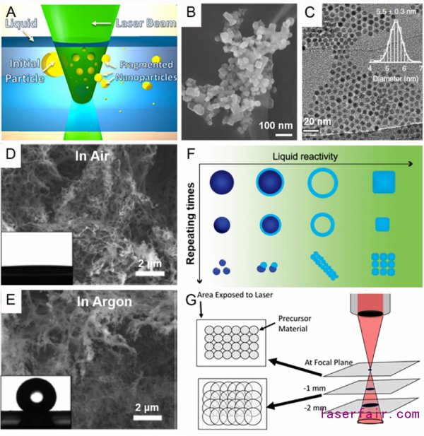 (A)激光液相燒蝕製備單分散納米晶示意圖。