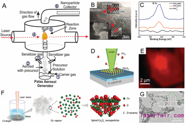 (F,G)激光誘導合成富含氧空位的Co3O4納米粒子。