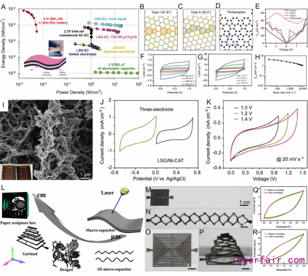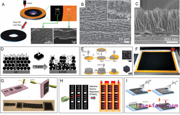(F) 激光輻照技術製備的大麵積石墨烯電極。
