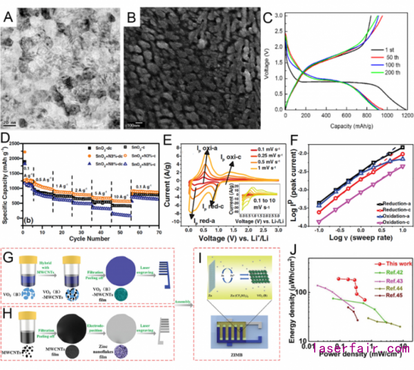 圖10、激光輔助構築電極材料及器件在可充電電池中的應用