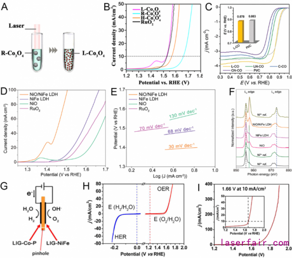 (G-I)激光輔助製備一體(ti) 化水電解裝置及其電解水性能。