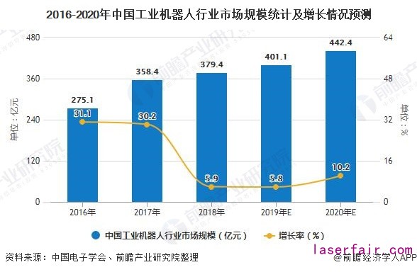 2016-2020年中國工業(ye) 機器人行業(ye) 市場規模統計及增長情況預測