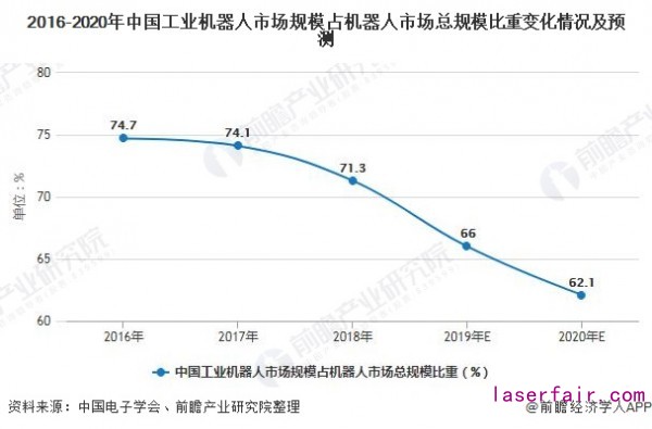 2016-2020年中國工業(ye) 機器人市場規模占機器人市場總規模比重變化情況及預測