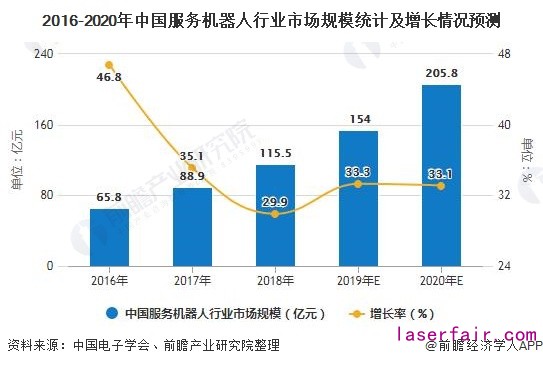 2016-2020年中國服務機器人行業(ye) 市場規模統計及增長情況預測