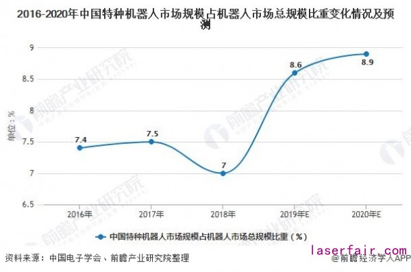 2016-2020年中國特種機器人市場規模占機器人市場總規模比重變化情況及預測