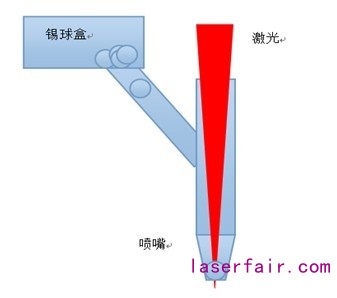 首先我們(men) 要了解激光錫球噴射焊接的工作原理,如下圖所示: