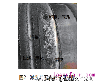 自激光熔覆獲得產(chan) 業(ye) 化應用以來,研究者圍繞各項參數對性能的影響及作用機理做了大量研究,可以較為(wei) 全麵的覆蓋激光熔覆技術應用中的關(guan) 鍵影響因素及影響機理。江吉彬等通過分析激光熔覆技術的國內(nei) 外研究現狀,指出熔覆參數類型有工藝參數、過程參數、質量參數,按照該分類方法,激光熔覆再製造參數從(cong) 激光光源、機床、待熔覆零部件基體(ti) 、粉末、送粉係統幾方麵可細分為(wei) :①激光功率、焦距(光源)、光斑規格。②機床精度、轉速、熔覆步進控製(機床)。③零部件形狀、尺寸及材料特性(零部件基體(ti) )。④粉末成分、功能、物理性能(粒度分布、流動性、鬆裝密度、氧含量)。⑤送粉速率。⑥保護氣流大小。這些參數的協調性作用,首先直接關(guan) 乎熔覆產(chan) 品的質量,最為(wei) 直觀的是氣孔、砂眼、裂紋等肉眼可見的熔覆層宏觀表征(見圖2),其次是熔覆尺寸以及機械加工完成後可測的表麵硬度、粗糙度、耐腐蝕性,再次是取樣檢測的熔覆層稀釋率、結合情況、內(nei) 部組織結構及缺陷情況、剖麵硬度、熱影響區大小等。