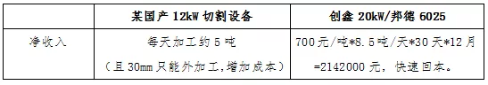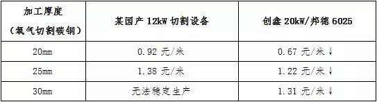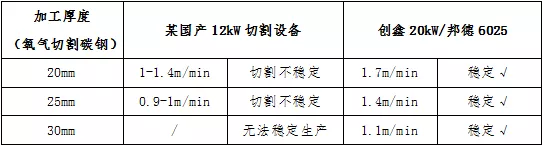 與(yu) 某國產(chan) 品牌12kW相比,20kW切割20/25/30mm,加工成本降低11%~27%,且能穩定加工30mm板材。