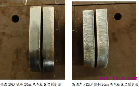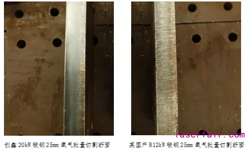 使用氧氣切割碳鋼,24小時生產(chan) 情況下,20kW比12kW更穩定,斷麵無掛渣,質量明顯提升,無須二次加工。