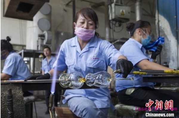 資料圖為(wei) 山西省晉中市,玻璃廠工人在生產(chan) 線上作業(ye) 。