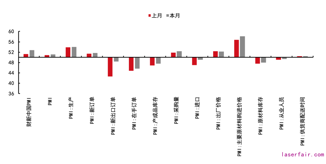值得一提的是,7月財新製造業(ye) PMI從(cong) 上月的51.2升至52.8,連續擴張3個(ge) 月並達到2011年2月以來最高水平,表明我國中小製造業(ye) 企業(ye) 也處於(yu) 良好的複蘇態勢之中。
