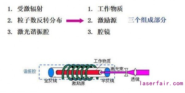 光是原子中的電子吸收能量後,從(cong) 低能級躍遷到高能量,再從(cong) 高能量回落到低能量,回落的時候釋放的能量光子的形式放出。而激光,就是被引誘(激發)出來的光子隊列,這光子隊列中的光子們(men) 光學特性一樣,步調及其一致。