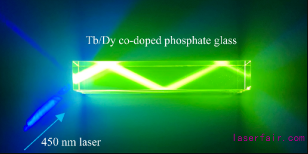 激光器450nm照射下的磷酸鹽玻璃