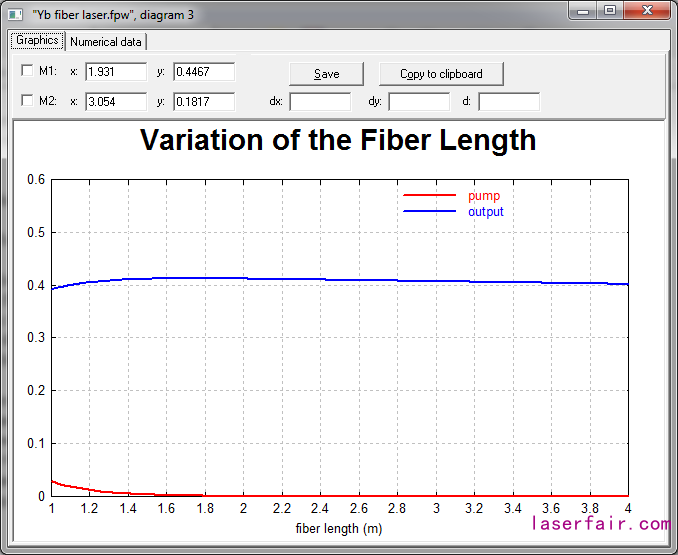 腳本程序中,通過插入對象函數set_R(),將放大器模型轉換為(wei) 激光器模型。設定光纖左端麵對信號光(激光)全反射(光纖布拉格光柵效應),輸出光纖端麵具有4%的反射率(裸纖端麵的菲涅爾反射效應)。