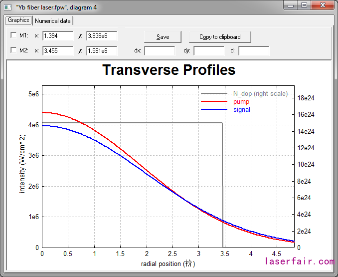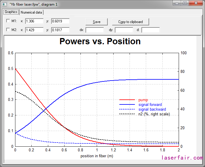 該範例為(wei) 摻釔光纖激光器的簡單模型。泵浦與(yu) 信號光均在單模光纖內(nei) 傳(chuan) 輸。