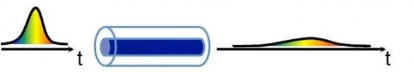 材料的線性光學性質由折射率確定。寬帶光脈衝(chong) 通過材料時具有不同的折射率,由於(yu) 這種色散,脈衝(chong) 中不同波長的光分量通過光纖的速度不同,其時間脈衝(chong) 包絡被展寬,但是頻譜不變。