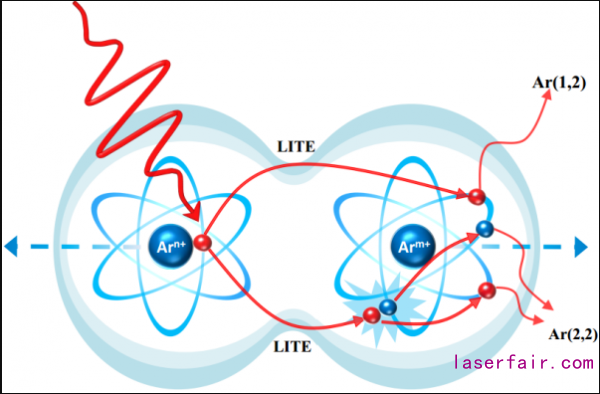 飛秒強激光驅動電子轉移(LITE)與(yu) 分子解離示意圖