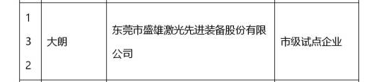 其中,激光行業(ye) 裏麵,再有三家企業(ye) 入選,分別是 東(dong) 莞市盛雄激光先進裝備股份有限公司、廣東(dong) 大族粵銘激光集團股份有限公司、東(dong) 莞市力星激光科技有限公司。