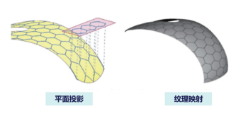 將調整後的平麵紋理形狀,準確無誤地“貼”在產(chan) 品三維曲麵的指定位置,形成無變形/無扭曲的三維紋理模型。