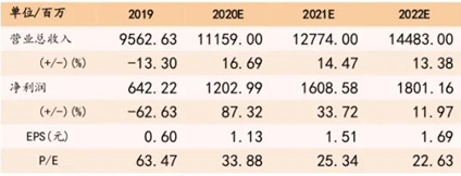 投資建議:我們(men) 預測 2020-2022 年公司營收分別為(wei) 111.59、127.74、144.83 億(yi) 元,歸母淨利潤為(wei) 12.03、16.09、18.01 億(yi) 元,EPS 為(wei) 1.13、 1.51、1.69 元,維持“強烈推薦”評級。