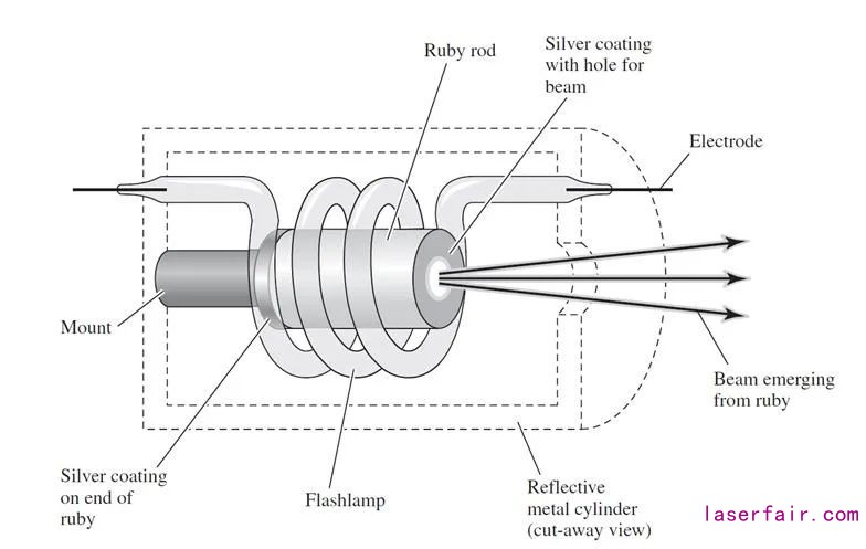 當時梅曼也需要開始新的項目。會(hui) 議之後,梅曼說服公司的管理人員,利用公司內(nei) 部的科研經費開始激光的研製。盡管很晚加入到激光的競賽當中,但梅曼很幸運,他選用的增益材料是紅寶石。