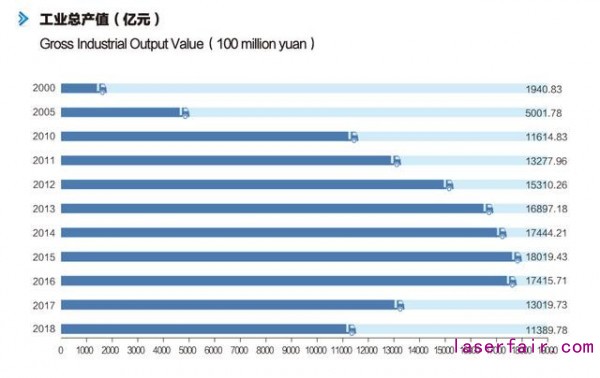 對於(yu) 青島製造業(ye) 來說,2017年是一個(ge) 分水嶺,這一年青島工業(ye) 總產(chan) 值從(cong) 前一年的17415.71億(yi) 元斷崖式下跌到了13019.73億(yi) 元,2018年繼續跌落到了11389.78億(yi) 元,一下子跌回到了2010年的水平。