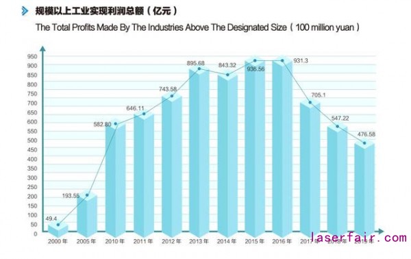 2018年規模以上工業(ye) 實現利潤總額547.22億(yi) 元,同樣比2010年的582.80億(yi) 元都要低,2019年則繼續下滑到476.58億(yi) 。