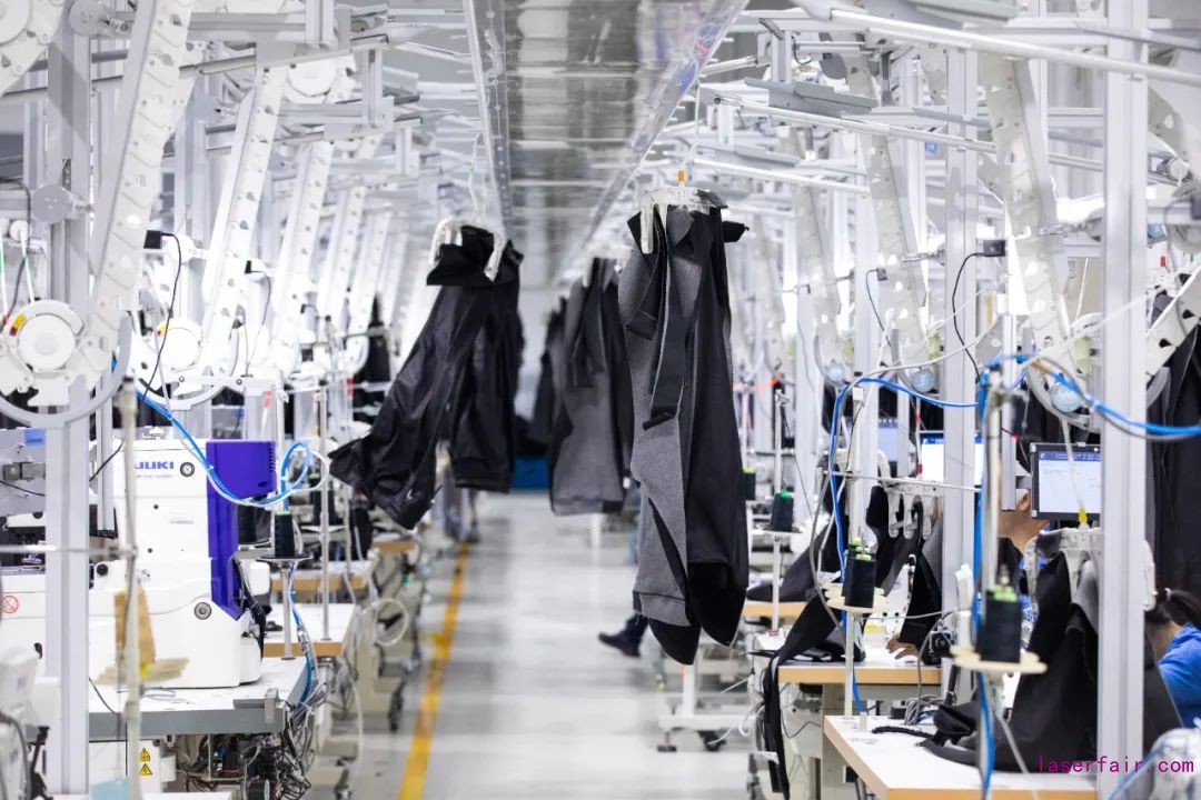 樣板工廠的車間屋頂,遍布著科幻色彩的棋盤式吊掛,服裝零部件在吊掛上往來穿梭。縫紉機一旁,經常有人敲打電腦;而工人的手邊,也有一台ipads。從(cong) 人員到設備,這都跟傳(chuan) 統意義(yi) 上的製造工廠大相徑庭。