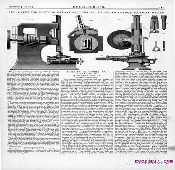 圖為(wei) 英國工程雜誌1868年刊登的一篇工程技術文獻,介紹了一種用於(yu) 軌道交通的劃線設備