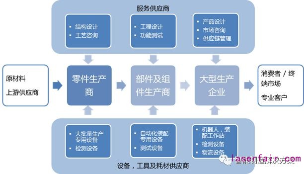 處於(yu) 製造業(ye) 上遊的零件生產(chan) 商所需要的服務以零件結構設計和製造工藝谘詢為(wei) 主,生產(chan) 設備則以強調效率的成型,加工和檢測設備為(wei) 主。