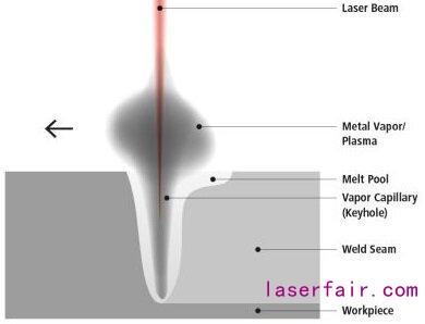 激光焊接金屬板材時形成匙孔效應的示意圖
