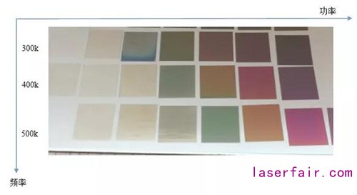 功率是能夠影響激光單脈衝(chong) 輸出最主要最直觀的控製變量,經過測試後發現,在不鏽鋼打彩時,頻率在和脈寬進行“較量”,頻率這一參數對色彩變化的影響更為(wei) 豐(feng) 富些。