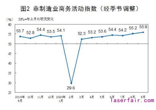 報告稱,中國9月非製造業(ye) PMI比上月上升0.7個(ge) 百分點,自3月份以來持續位於(yu) 臨(lin) 界點以上,景氣度穩定回升。