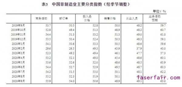 分行業(ye) 看,建築業(ye) 商務活動指數為(wei) 60.2%,與(yu) 上月持平。服務業(ye) 商務活動指數為(wei) 55.2%,比上月上升0.9個(ge) 百分點。