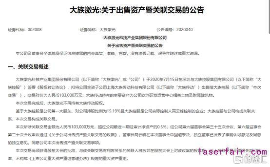 二是公司今年七月宣布轉讓大族傳(chuan) 動公司,以致收到深交所關(guan) 注函。大族激光自2010年起宣布在歐洲建立研發運營中心,總曆時十年,並且在2020年即將竣工,總耗資約11.5億(yi) 人民幣。然而公司在今年七月卻發布公告稱要以10億(yi) 價(jia) 格轉讓給其控股股東(dong) 。此舉(ju) 不免被市場質疑財務出現貓膩,一度成為(wei) 市場關(guan) 注焦點。雖然公司回複是由於(yu) 公司戰略調整、產(chan) 業(ye) 環境的變化以及突發的新冠疫情影響了研發中心的後續使用,但對於(yu) 公司在即將竣工前將耗時多年的研發中心賣掉的舉(ju) 動不免讓人對於(yu) 歐洲研發運營中心的客觀存在和實用性都產(chan) 生懷疑。不管如何,此舉(ju) 對公司後續的經營和業(ye) 績或多或少都將產(chan) 生影響。