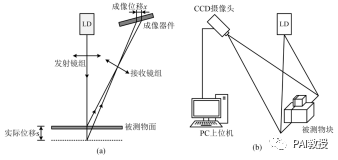 (a)一維點激光三角測量法 (b)二維線激光三角測量法