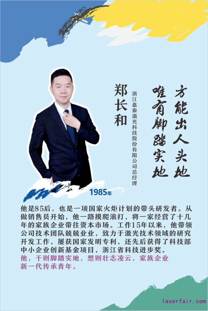 功夫不負有心人,鄭長和對於(yu) 工作的兢兢業(ye) 業(ye) 得到了大家的廣泛認可。2018年,他開始擔任浙江嘉泰激光總經理,主抓市場銷售團隊和企業(ye) 的管理。對於(yu) 這份肯定和期望,鄭長和依然如履薄冰,他知道自己還有很長的路要走,同時,他也信心滿懷、肩負更大的責任,懷著對未來的憧憬奮勇向前。