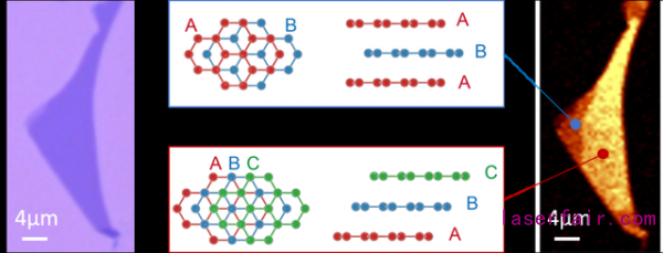 針對上述問題,國防科技大學聯合國內(nei) 外多家科研單位開展合作,首次在機械解離的三層石墨烯中實現了由激光輻照誘導的從(cong) ABC堆垛到ABA堆垛的有序結構相變。實驗結合共聚焦拉曼光譜顯微鏡、光學二次諧波和掃描近場光學顯微鏡等手段詳細研究了相變前後石墨烯的晶體(ti) 結構和光學特性。
