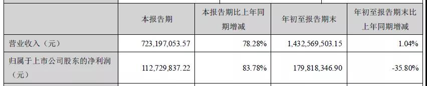 武漢銳科光纖激光技術股份有限公司(以下簡稱“銳科激光”或“公司”)發布了2020年第三季度報告。報告顯示,銳科激光第三季度營收7.23億(yi) 元,同比增長78.28%;歸屬於(yu) 上市公司股東(dong) 的淨利潤1.13億(yi) 元,同比增長83.78%。