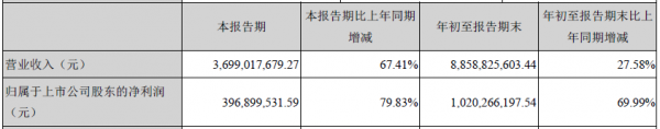 10月25日晚,大族激光科技產(chan) 業(ye) 集團股份有限公司(以下簡稱“大族激光”或“公司”)發布了2020年第三季度報告。報告顯示,大族激光第三季度營收36.99億(yi) 元,同比增長67.41% ;歸屬於(yu) 上市公司股東(dong) 的淨利潤3.97億(yi) 元,同比增長79.83%。
