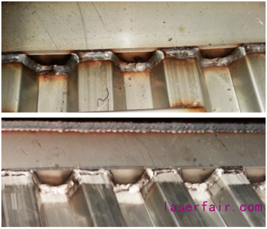 以激光清洗在不鏽鋼列車製造環節中的應用為(wei) 例,可有效去除不鏽鋼表麵油汙、拉絲(si) 牆板點焊焊痕、不鏽鋼電弧焊後氧化、拉絲(si) 牆板激光焊殘膠等,效果優(you) 秀。