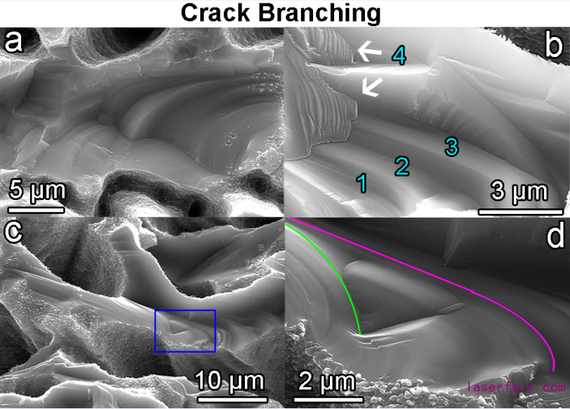 碎裂分叉 不同裂痕路徑的同時碎裂或相繼碎裂會(hui) 導致結構和碎裂紋痕的突變,如圖7所示。